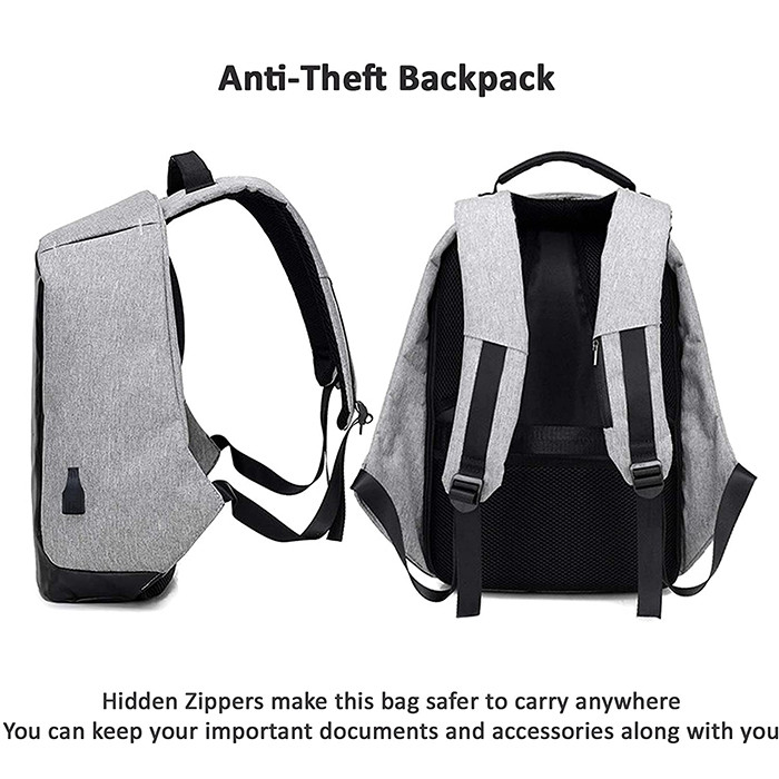Ba lô doanh nhân chống trộm có cổng sạc USB / Ba lô máy tính xách tay trọng lượng nhẹ / Chống nước cho học sinh, nam và nữ - Xám
